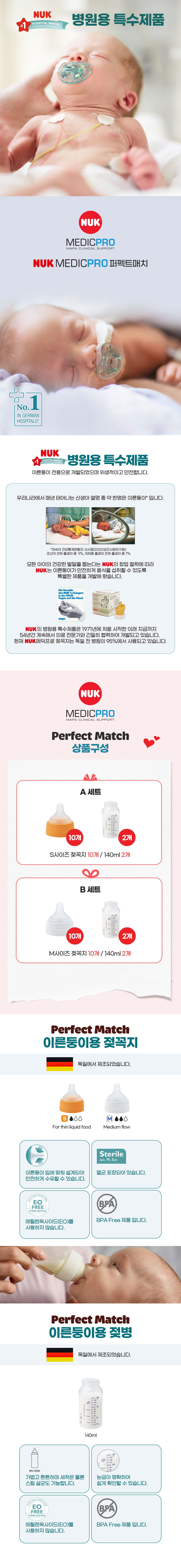 > 누크 메딕프로 퍼펙트매치 이른둥이 패키지 (이른중이 젖꼭지 10개 + 젖병 140ml 오픈형 2개)